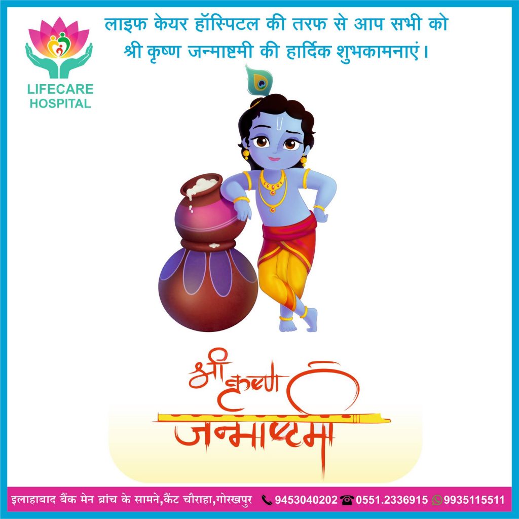 प्रेम से श्री कृष्ण का नाम जपोदिल की हर इच्छा पूरी होगीकृष्ण आराधना में लीन हो जाओउनकी महिमा जीवन खुशहाल कर देगीलाइफ केयर हॉस्पिटल की तरफ से आप सभी को श्री कृष्ण जन्माष्टमी की हार्दिक शुभकामनाएं ।