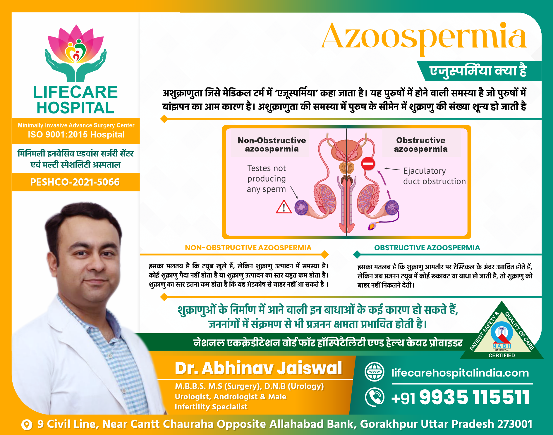 अशुक्राणुता जिसे मेडिकल टर्म में ‘एजूस्पर्मिया’ कहा जाता है। यह पुरुषों में होने वाली समस्या है जो पुरुषों में