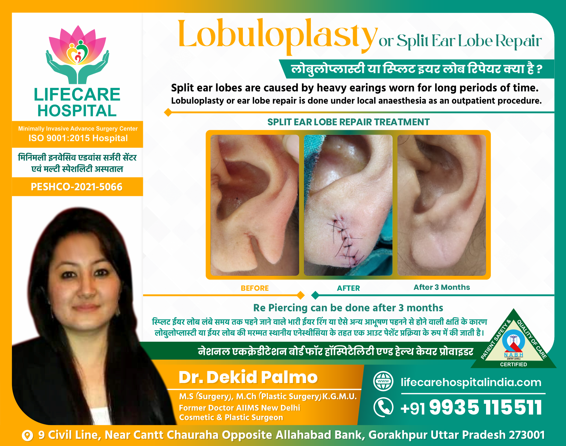 Lobuloplasty or ear lobe repair is done under local anaesthesia as an outpatient procedure.