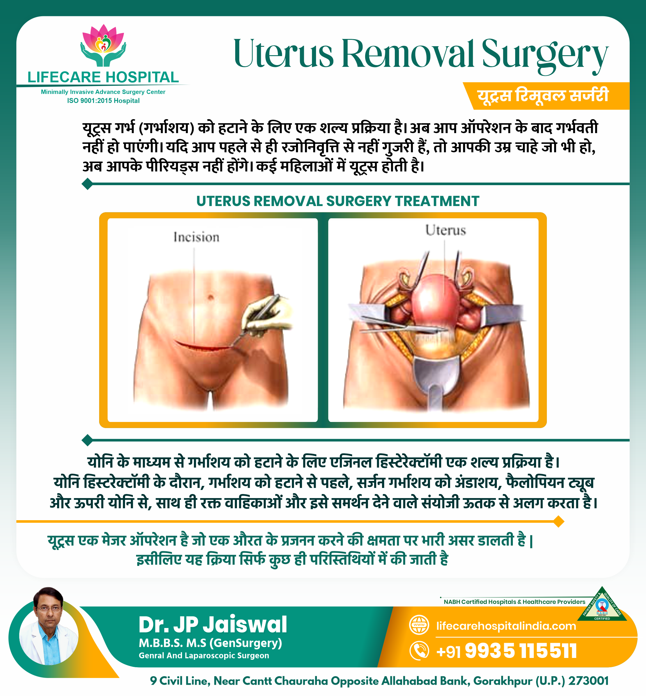 यूट्रस एक मेजर ऑपरेशन है जो एक औरत के प्रजनन करने की क्षमता पर भारी असर डालती है | इसीलिए यह क्रिया सिर्फ कुछ ही परिस्तिथियों में की जाती है