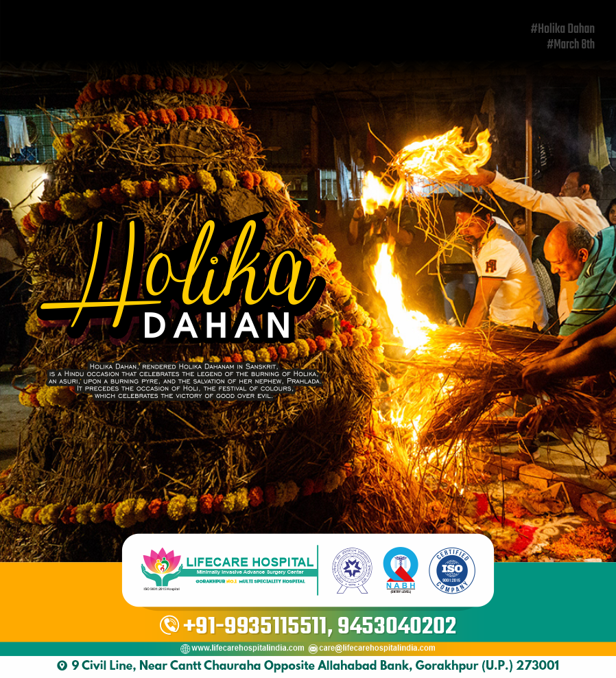 Holika Dahan, rendered Holika Dahanam in Sanskrit, is a Hindu occasion that celebrates the legend of the burning of Holika, an asuri, upon a burning pyre, and the salvation of her nephew, Prahlada. It precedes the occasion of Holi, the festival of colours, which celebrates the victory of good over evil.