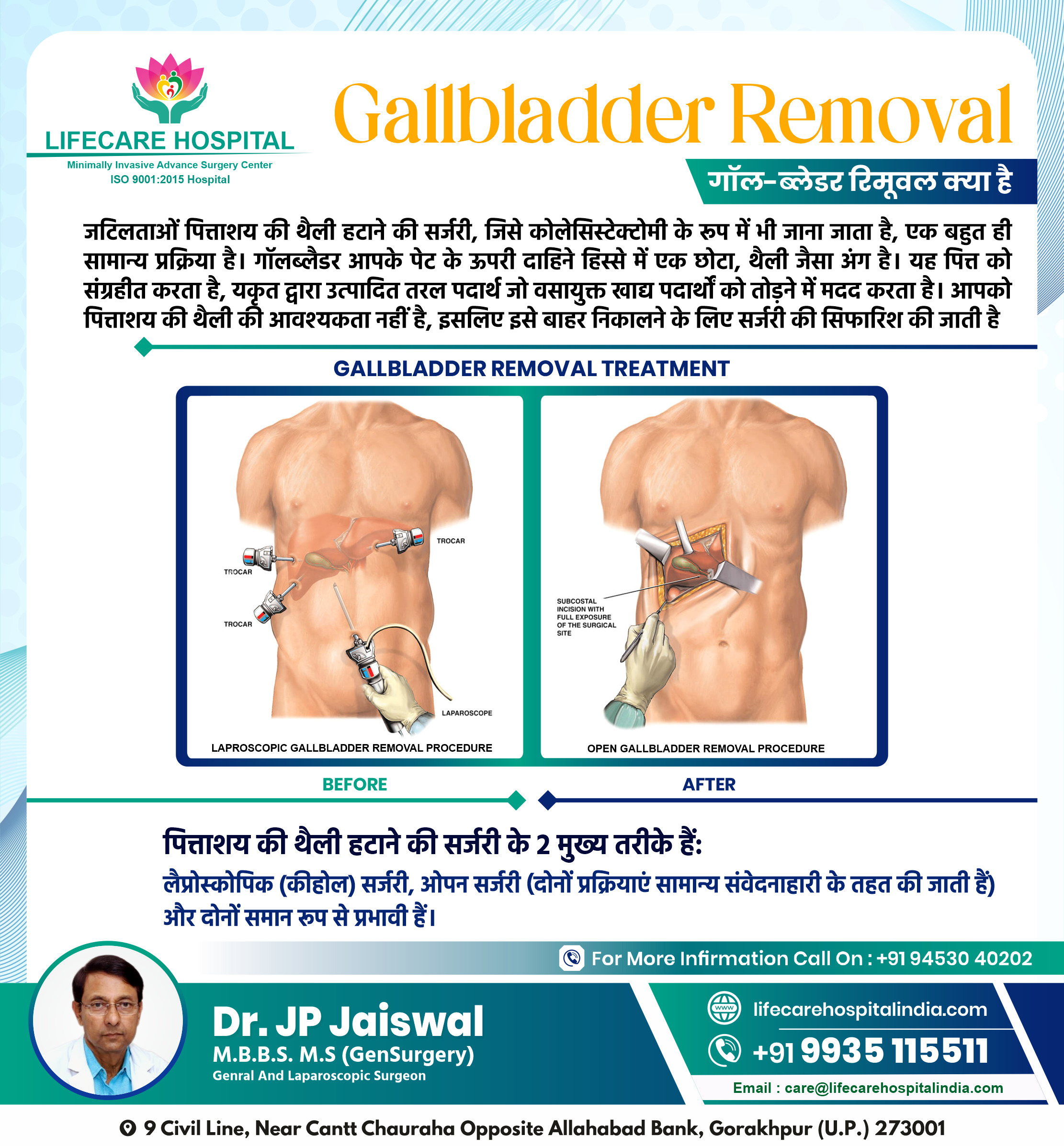 पित्ताशय की थैली हटाने की सर्जरी के 2 मुख्य तरीके हैं: