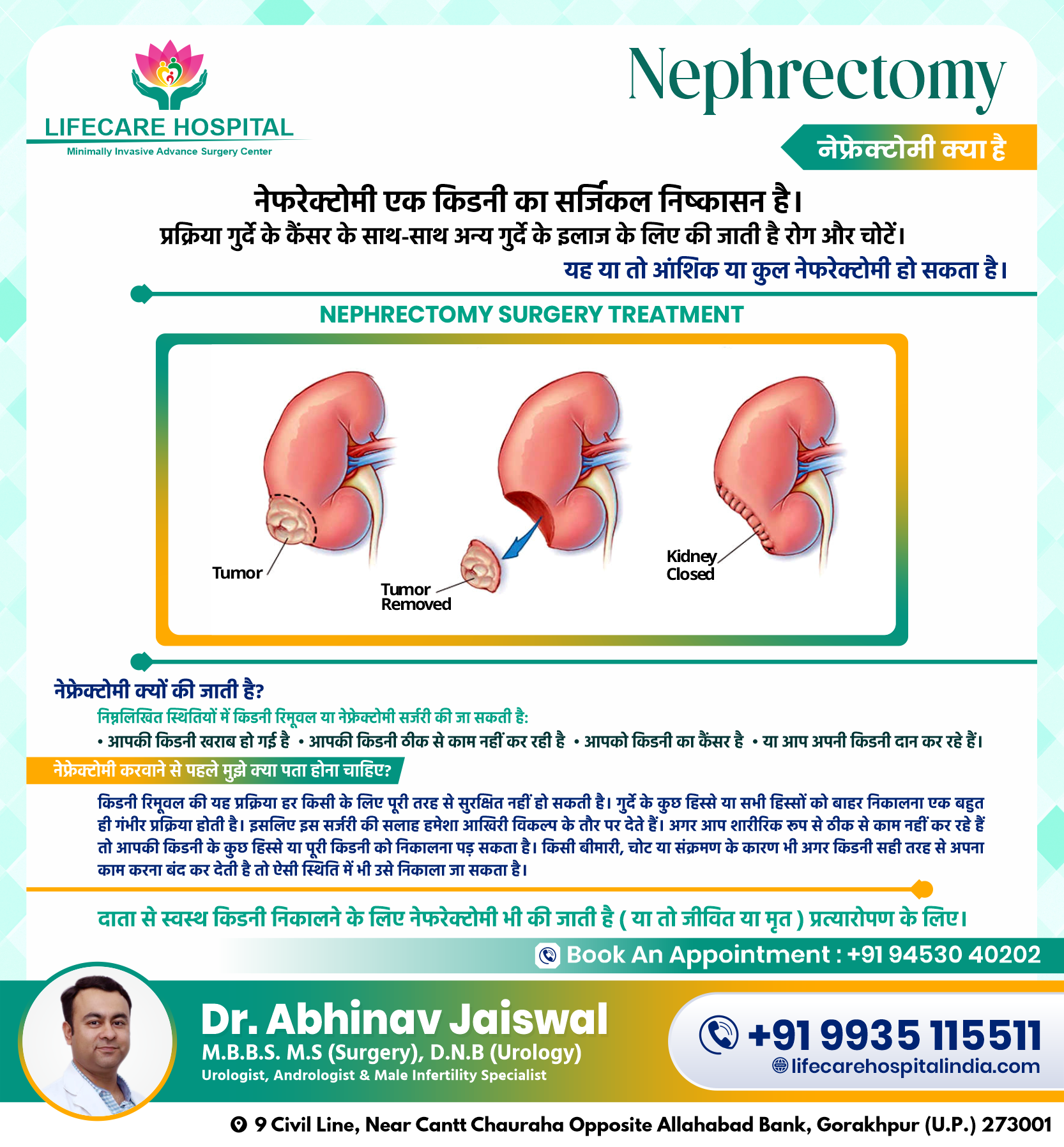 निम्नलिखित स्थितियों में किडनी रिमूवल या नेफ्रेक्टोमी सर्जरी की जा सकती है: