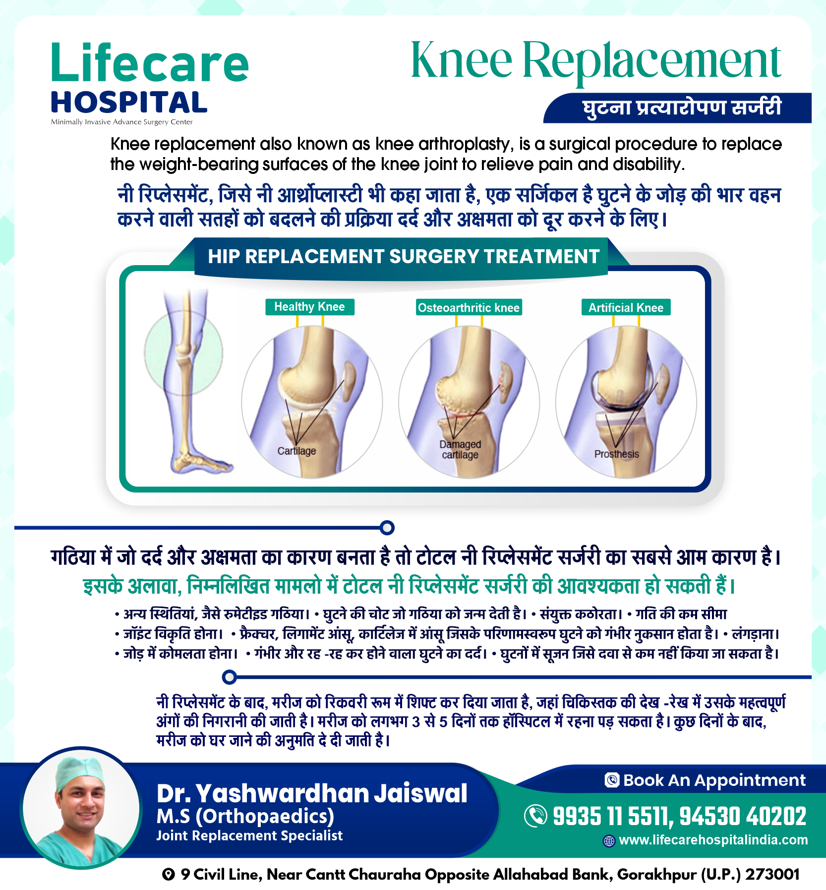 नी रिप्लेसमेंट, जिसे नी आर्थ्रोप्लास्टी भी कहा जाता है, एक सर्जिकल है घुटने के जोड़ की भार वहन करने