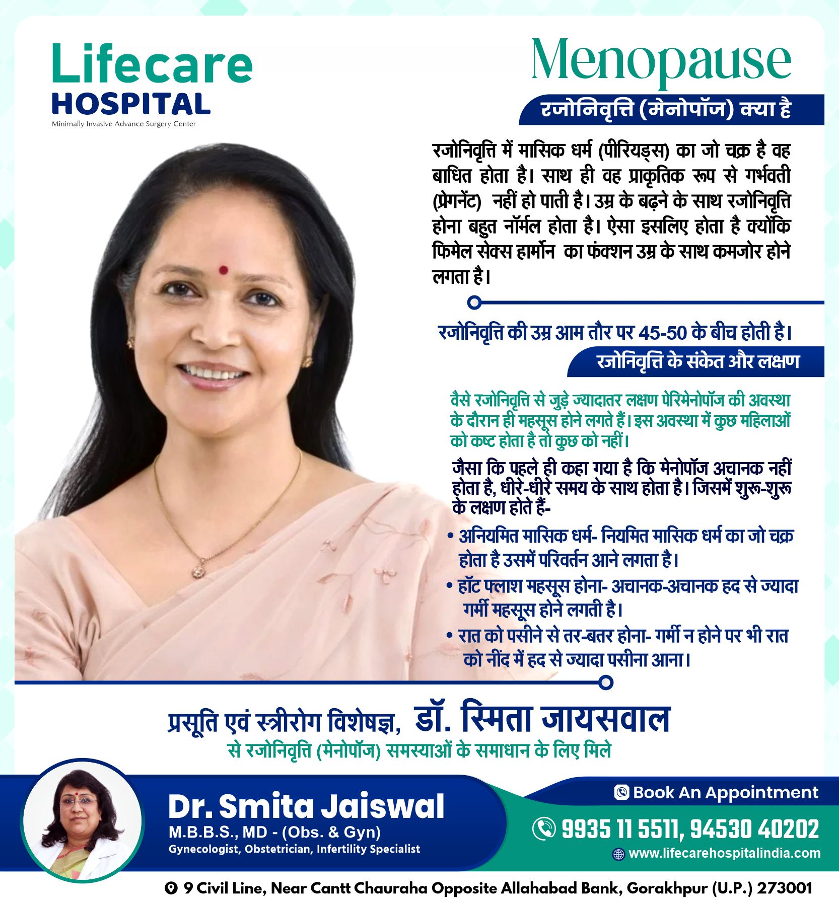 रजोनिवृत्ति की उम्र आम तौर पर 45-50 के बीच होती है।