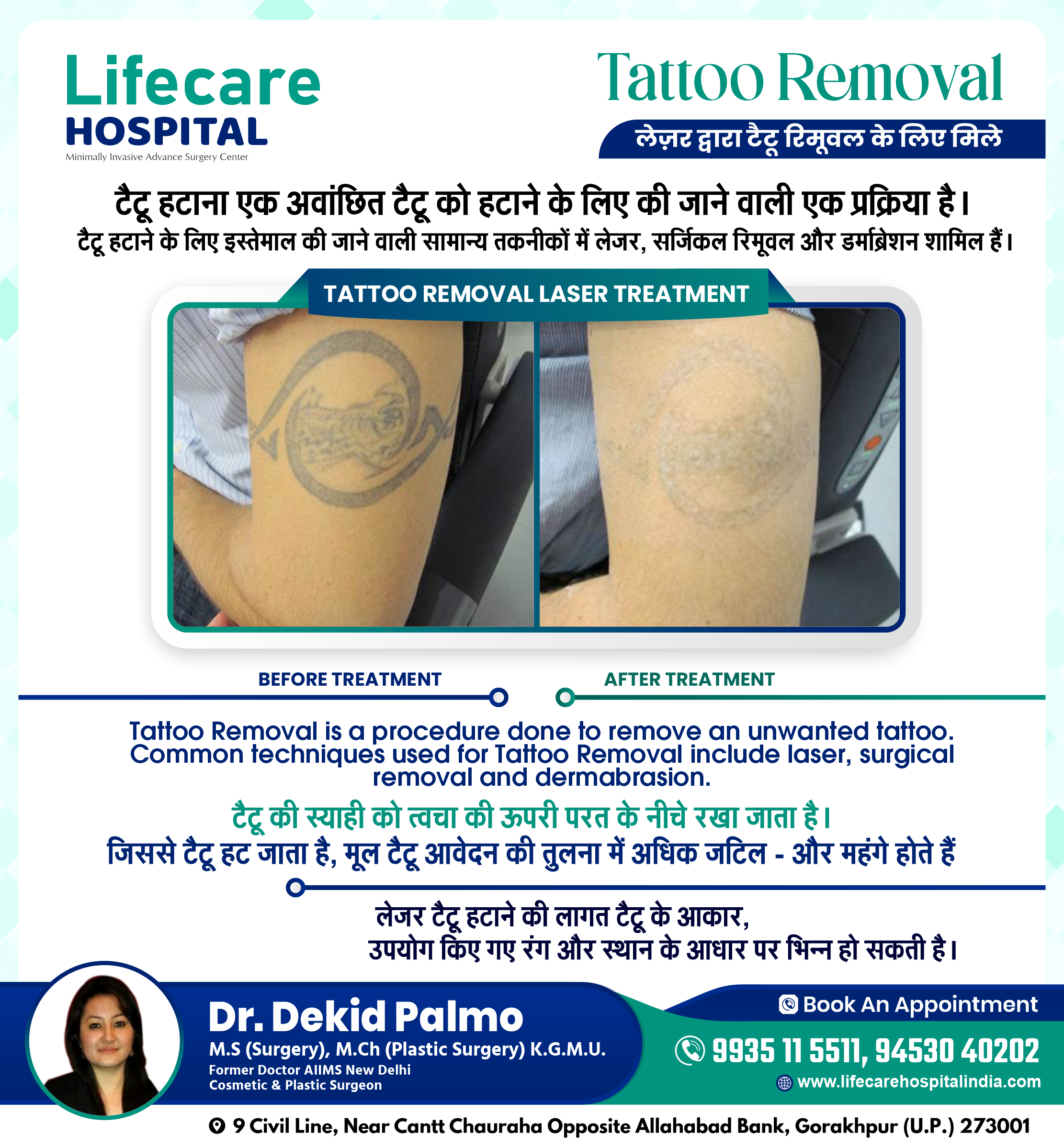 टैटू की स्याही को त्वचा की ऊपरी परत के नीचे रखा जाता है। जिससे टैटू हट जाता है