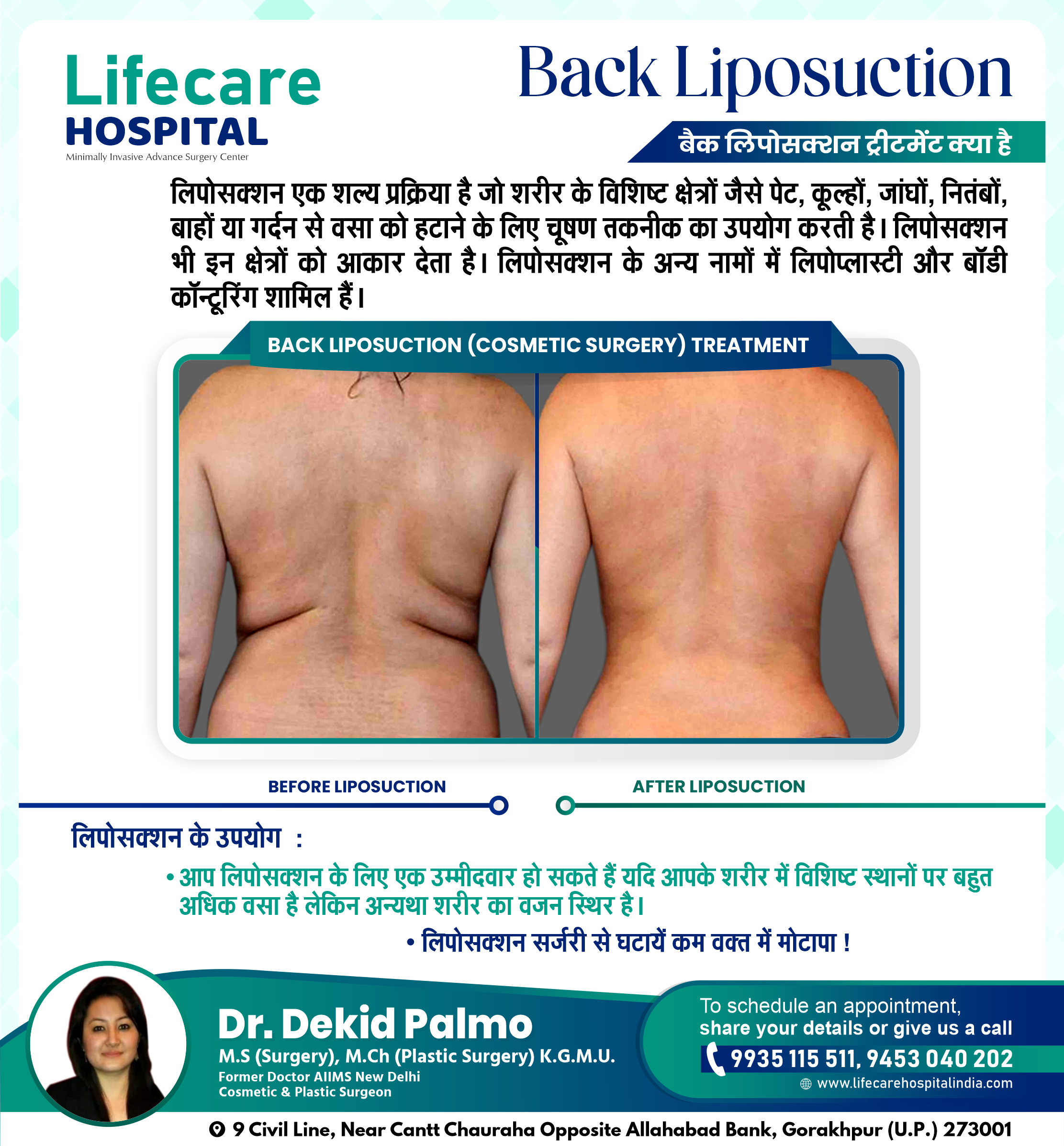 • लिपोसक्शन वजन कम करने का विकल्प नहीं है और यह मोटापे का इलाज नहीं है। यह सेल्युलाईट या खिंचाव के निशानों को हटाने के लिए भी एक प्रभावी तरीका नहीं है।