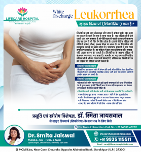 LifeCare Hospitalव्हाइट डिस्चार्ज (लिकोरिया) क्या है ? Leukorrhea is a mild, odorless discharge from the vagina that is clear or milky in color.1 Many people notice that leukorrhea increases during pregnancy, either at the start of pregnancy or as the pregnancy progresses. In most cases, this discharge is normal and healthy. Some people worry that having it means that they have a vaginal infection, but most of the time, leukorrhea is completely harmless (and is even a sign that the vagina is healthy). During pregnancy, leukorrhea may become more noticeable. This […]